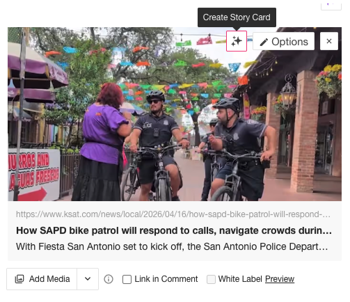 Already have an image or link loaded? Tap the Create Story Card button to use the uploaded graphic instead of the image from the news story.