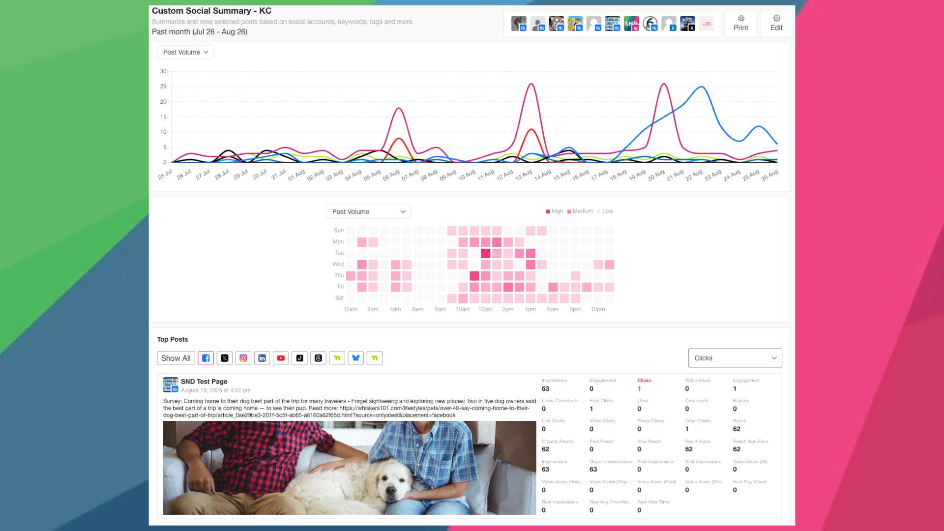 - Filter with Precision – Narrow down by post type (photo, video, link, etc.), keyword, or SND Metatag to focus on specific campaigns or topics.